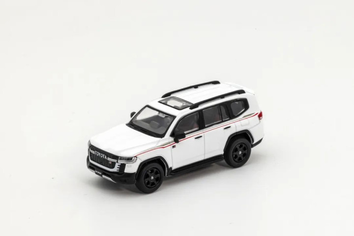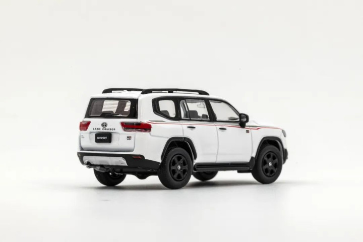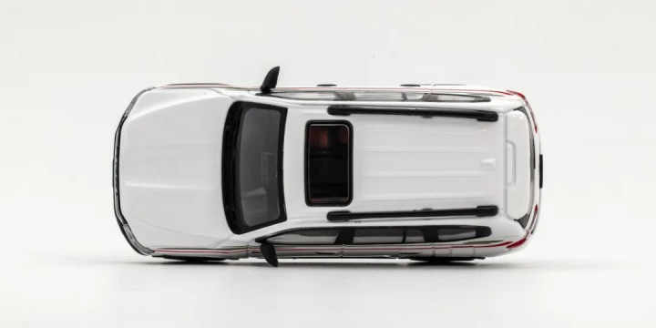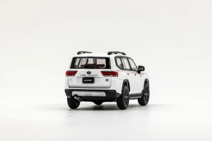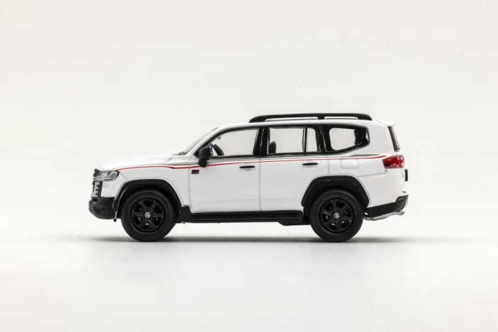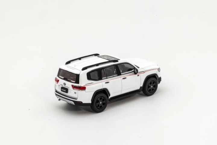此次试玩的是白色的丰田陆巡LC300 GR-S模子,模子的外形复原照旧挺高的,瑕疵刻线也算均匀;而漆面方面,素白色漆均匀度较高,基本莫得橘皮表象,车身侧面还有丰田陆巡私有的双色拉花,这个亦然移印的;车门把手和GR的象征齐是移印的,车外后视镜亦然玄色零丁分件的,但忽略了LED示宽灯,模子侧面的玄色脚踏板和底盘一体,质感一般,车顶行李架亦然玄色零丁件的。